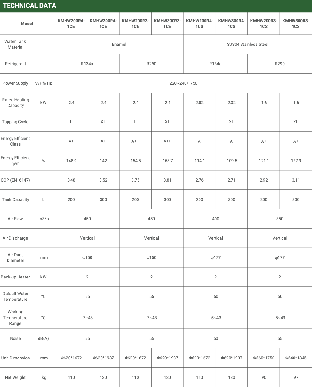 Tùy chọn R134A/R290; tương thích với các bảng điều khiển năng lượng mặt trời, điện năng mặt trời và các nguồn nhiệt khác như lò hơi.